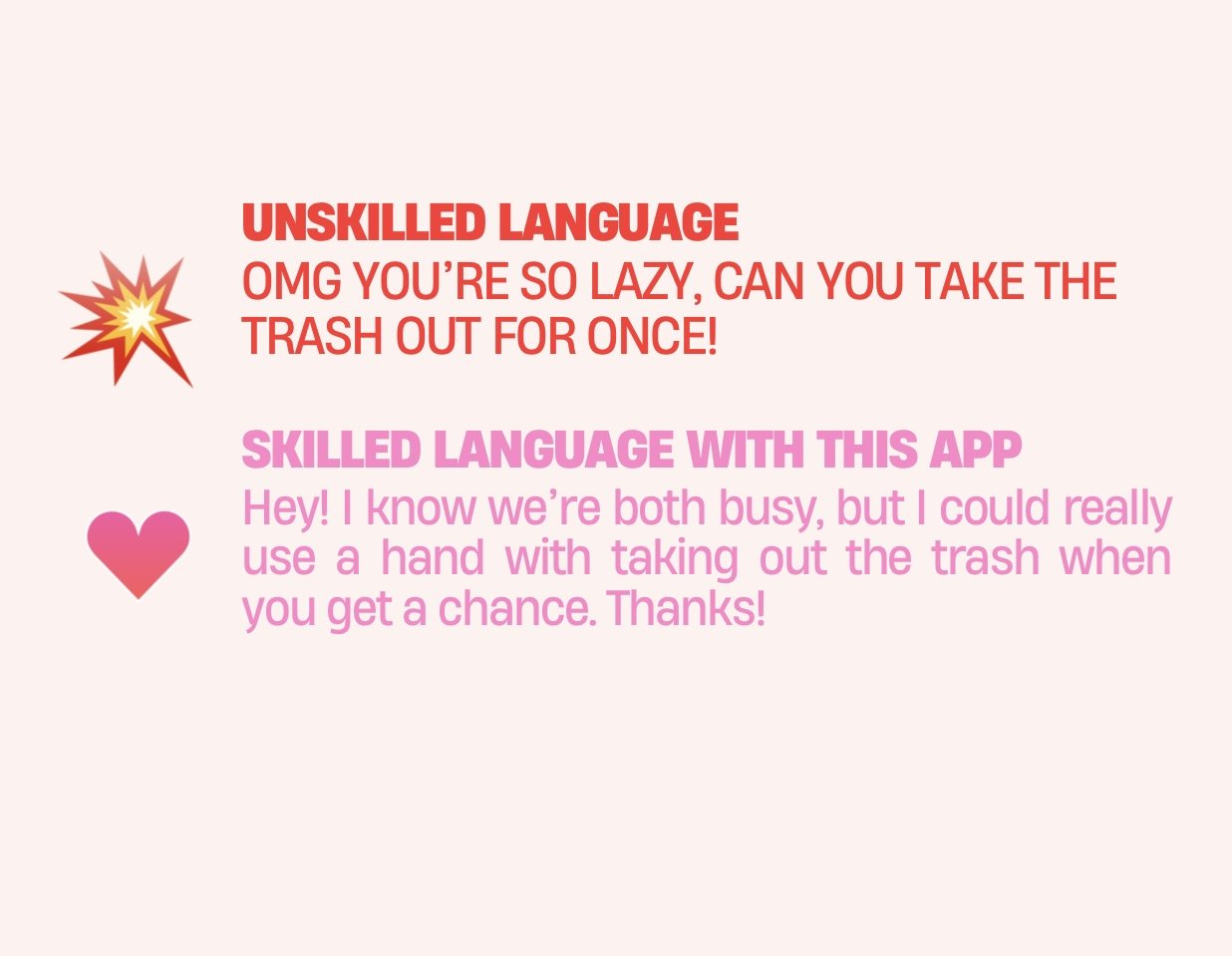 An app that translates your heated messages into effective asks for support, so you actually get what you need instead of starting a fight.